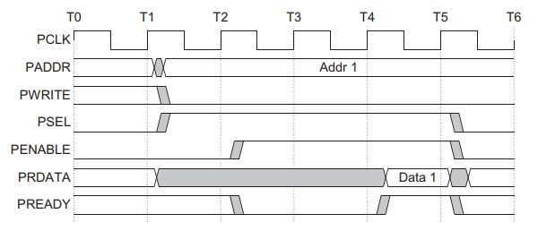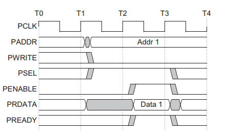 T4에서 PREADY=1과 동시에 PRDATA에 읽은 데이터는 올려줍니다.