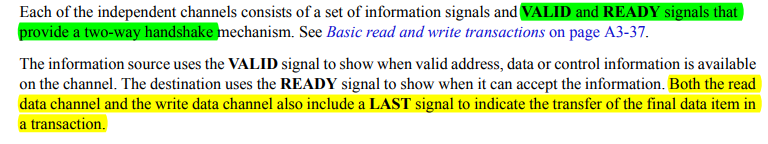 또한 R, W channel에는 LAST 신호가 있어서 마지막 데이터가 전송되었음을 알 수 있습니다.