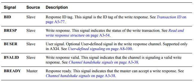 이후 Slave에서 잘 쓰였는지 Write response channel을 통해 응답합니다.