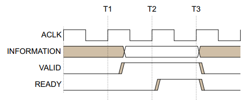 Timing diagram을 보면 T2에서 VALID와 READY가 모두 HIGH입니다.