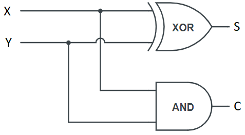 Half Adder는 간단하기 때문에 따로 카르노맵을 그리지 않아도 쉽게 구할 수 있습니다.