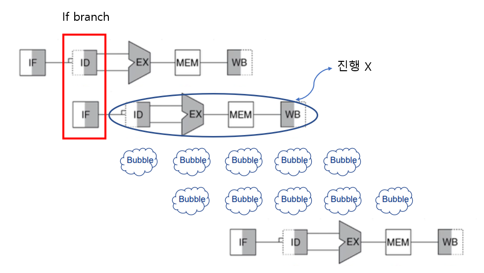 branch 때문에 중간에 delay되는 구간이 존재하는데,