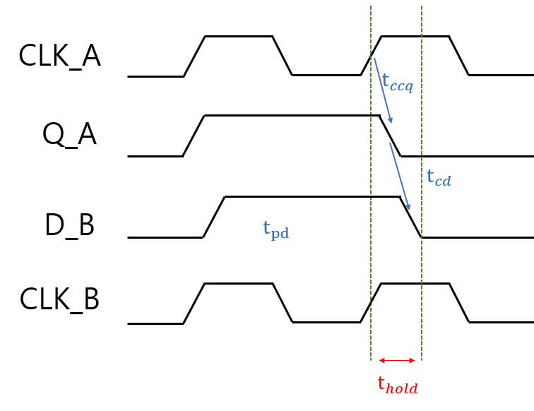 t_ccq와 t_cd의 합이 t_hold 보다 작다면 Hold Time Violation이 발생합니다.