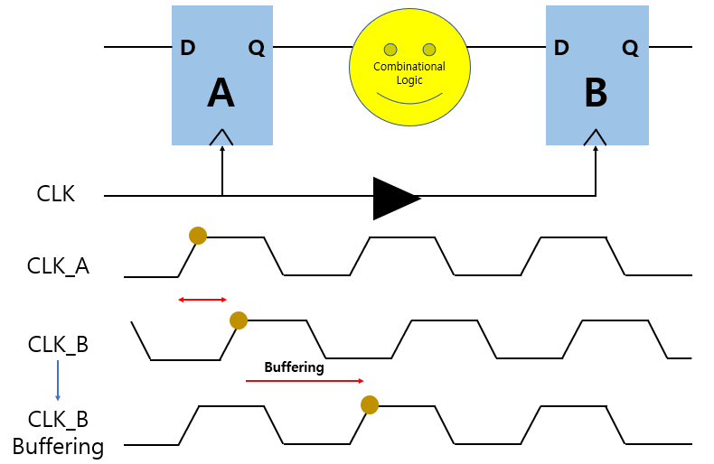 Buffer를 이용해 Delay를 주어 Clock Timing을 맞추는 방법입니다.