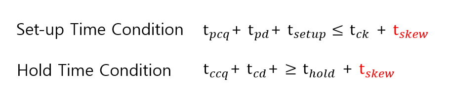 이제 Clock Skew라는 변수가 생겼으니 Set-up Time과 Hold Time을 보정해줘야 합니다.
